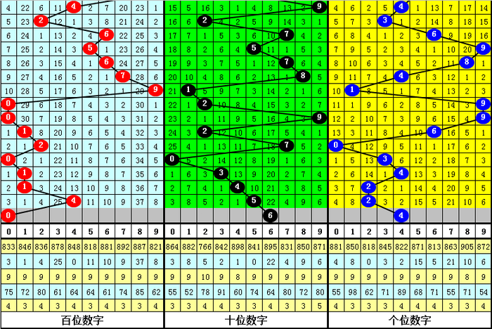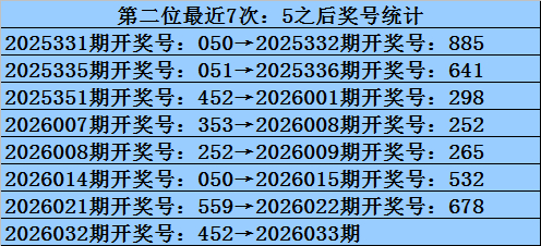 第二位冷码判断:上期奖号为5,遗漏值为10期,目前该位最冷号码为6,遗漏值为22期,本期注意冷码6出现。